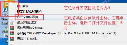 8.在安装激活补丁前,先打开软件安装目录(如果大家忘记安装目录的位置,请在桌面找到软件图标,并且右键点击图标,选择“打开文件位置”即可),如图