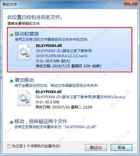 10.点击“移动和替换”,因为是两个文件所以需要点击两下,如图