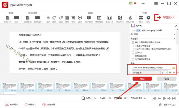 7、然后再给GIF设置一个文件保存位置以及命名,点击“确定”。