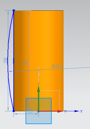 2、其次,在圆柱体横截面用草图命令绘制封闭曲线,封闭曲线可以依据自己设计而定,这里采用最简单的弧线作为例子,然后利用旋转命令绘制出杯子外部弯曲部分。