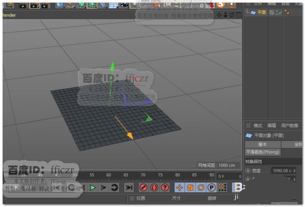 1、创建一个平面作为地面,尺寸可随时调整。总之地面要比模型大很多。
