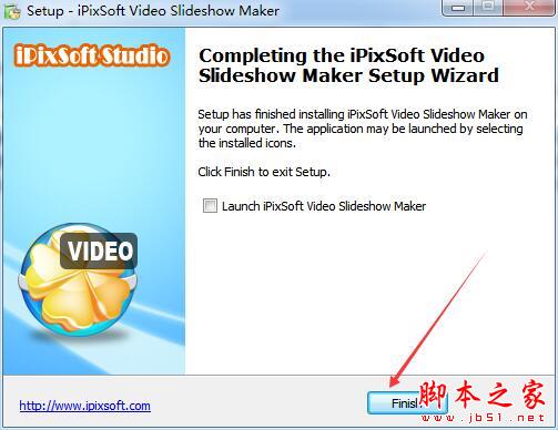 9、稍等片刻即可完成安装,点击Finish退出安装向导(勾选掉Launch iPixSoft Video Slideshow Maker,此时不要运行软件)