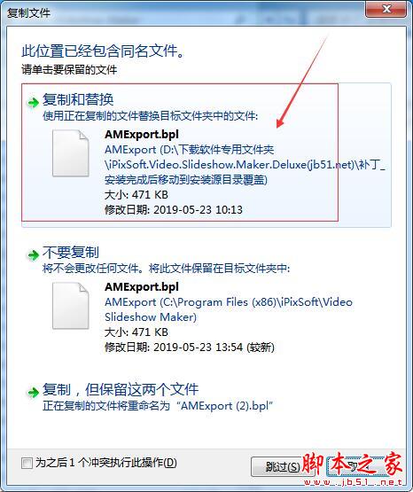 10、将软件包里补丁里的两个文件复制粘贴到软件安装目录里(默认位置:C/Program Files(x86)/iPixSoft/Video Slideshow Maker)