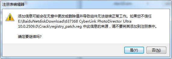 6.点击安装包Crack文件夹中的"registry_patch.reg"选择是