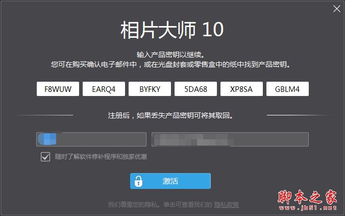 10.打开软件,将刚复制的密钥粘贴其中,填入名称和邮箱,点击激活