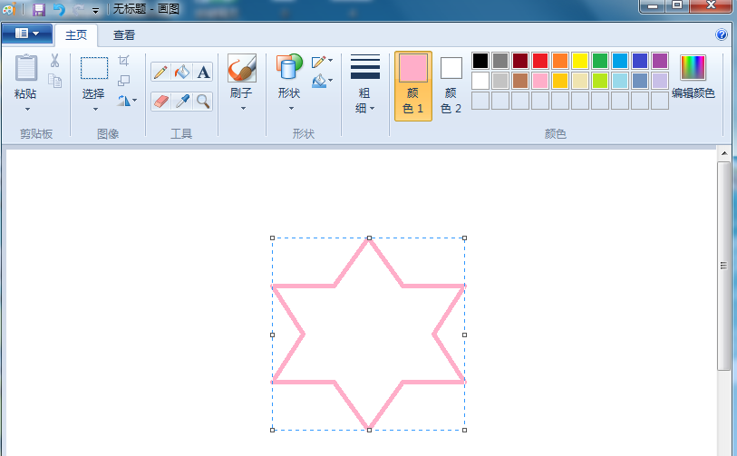 5、用左手按住shift键不放,右手按下鼠标左键,在画布上拖动鼠标,绘制出一个六角星;