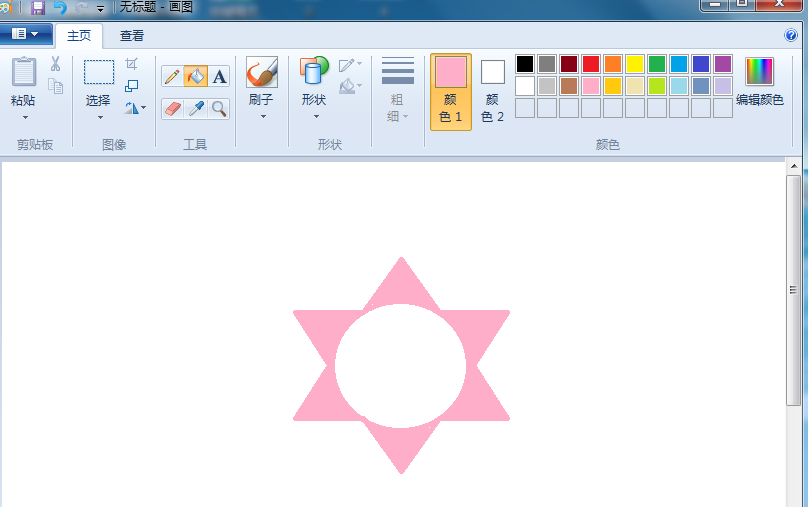 9、在圆形外部的六个小三角形处点击鼠标,填充上颜色;