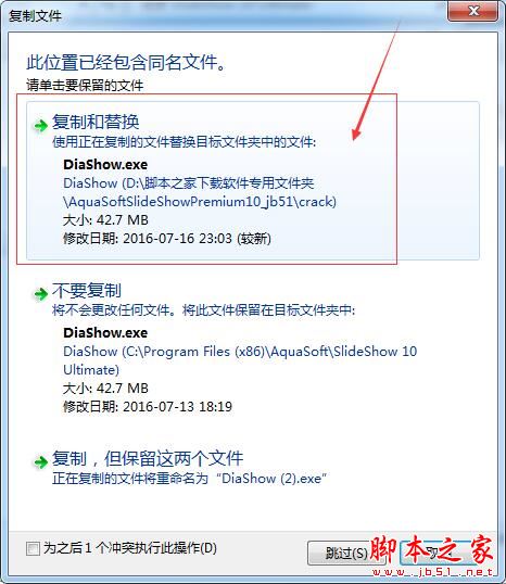 6、将软件包里的Crack文件夹里的破解补丁复制粘贴到软件安装目录里(C/Program Files (x86)/AquaSoft/SlideShow 10 Ultimate)
