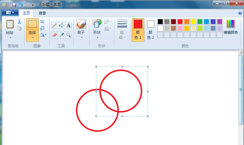 9、将圆形移到合适的位置,让它与第一个圆形相交;
