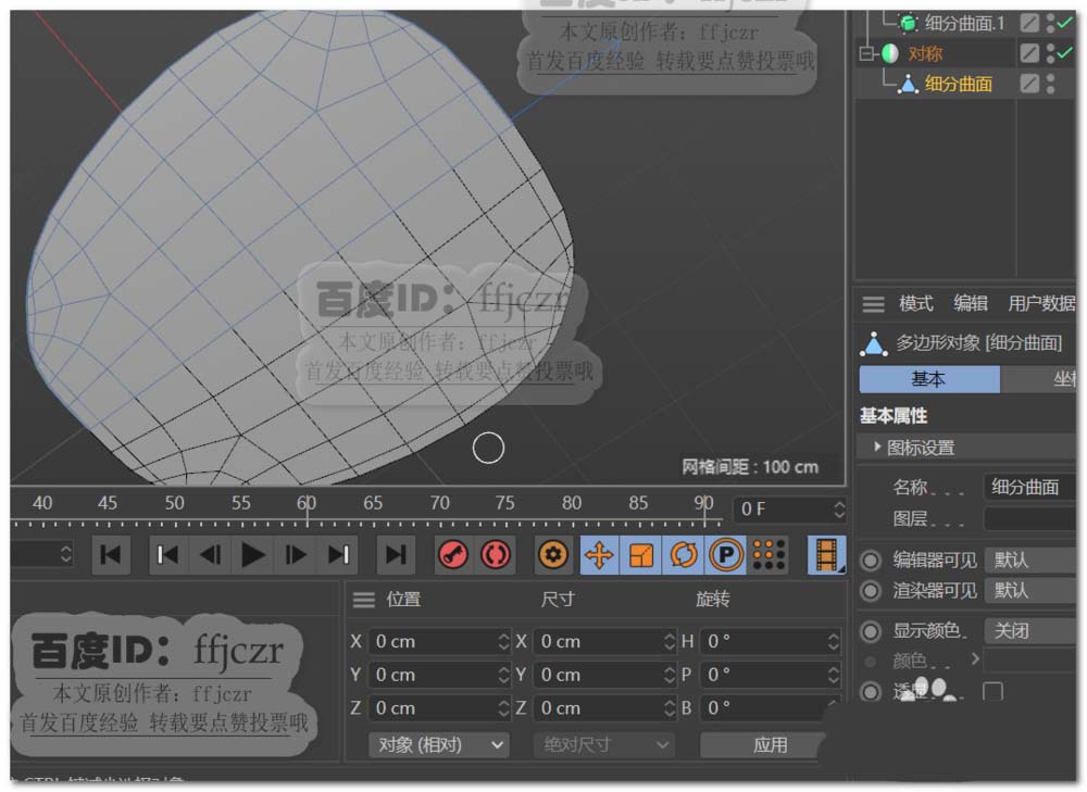 5、要对现有模型表面添加细节,表面的结构线还不够;给多边形添加一个细分曲面,细分值为1.删除模型的一半,添加一个对称命令。方便后面的工作。