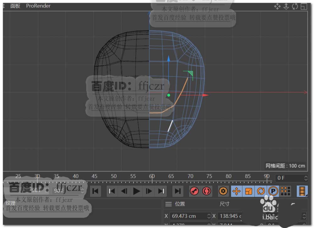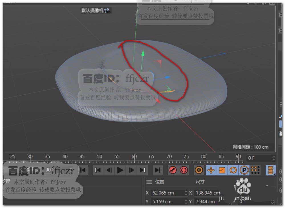 3、给多边形添加一个FFD变形器,匹配到父级后在顶视图调整FFD的控制点使多边形的外形得到圆弧的造型,如图所示。