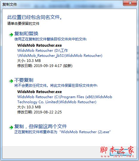 6.将安装包中的WidsMob Retoucher.exe复制到软件安装目录中,软件安装目录为C:\Program Files (x86)\WidsMob Technology Co. Limited\WidsMob Retoucher,点击复制和替换