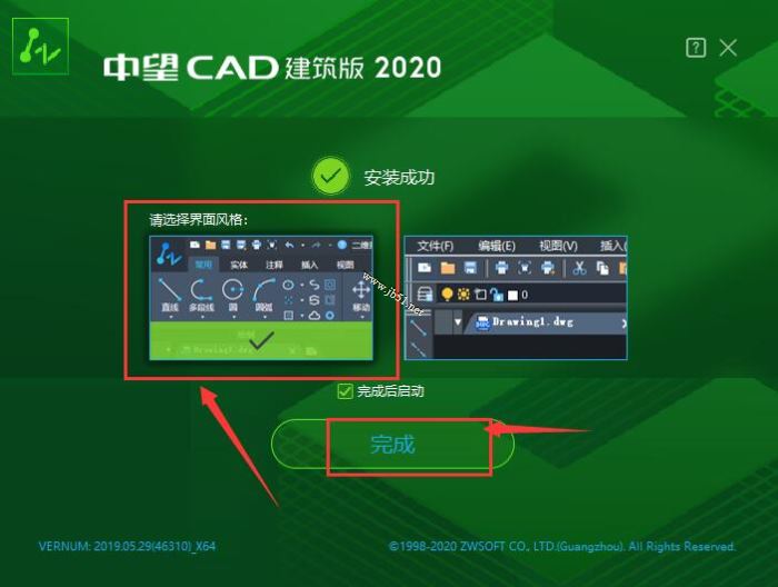 3、选择界面的风格,点击“完成”