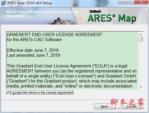1.下载解压后双击"ARES_Map_2019_SP2_2019.2.1.3124_978_x64.exe"进行安装,选择我接受,点击next