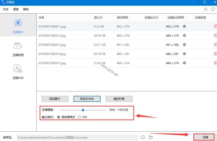 2、选择压缩的质量以及输出的格式,点击“压缩”