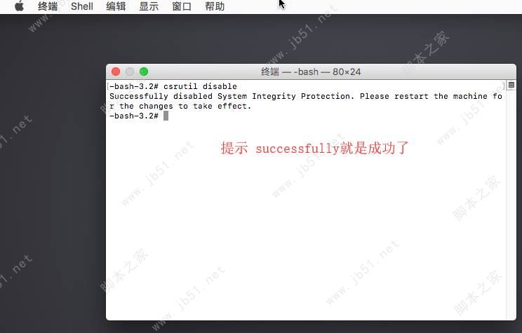 4.关闭重启系统即可,当然了你如果想要再确认是否打开SIP,可以在终端输入命令 csrutil status 查询(只要显示 disabled 说明已经禁用SIP)