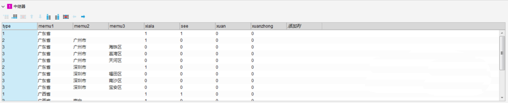 type:分1、2、3三个级别,1表示一级(如广东省),2表示二级(如广东省—广州市),3表示(广东省-广州市-海珠区)。