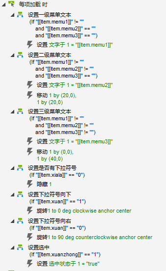 如果是三级菜单,设置多选框文字=memu3,并且移动下拉符号和多选框组合向右移动40
