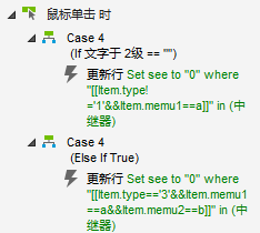 如果xuan=1,更新行this,列xuan=0。设置文本1级文本标签=memu1,2级文本标签=memu2,出发鼠标单击收起按钮。