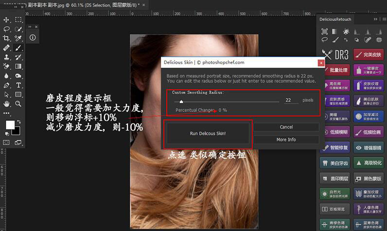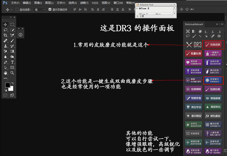 2019最新一键磨皮调色美妆插件—DR5,这次升级无论是在处理速度、功能、还是在效果上都比之前的DR3、4、5都有了大幅度的提升,更加的智能。而且使用面板中包含了多种适用于人像修饰的功能,例如完美皮肤、一键磨皮、高低频、皮肤纹理、双曲线加深减淡等功能,可以快速进行人像美容修饰,能够帮助摄影爱好者达到快速处理皮肤的神仙级插件。