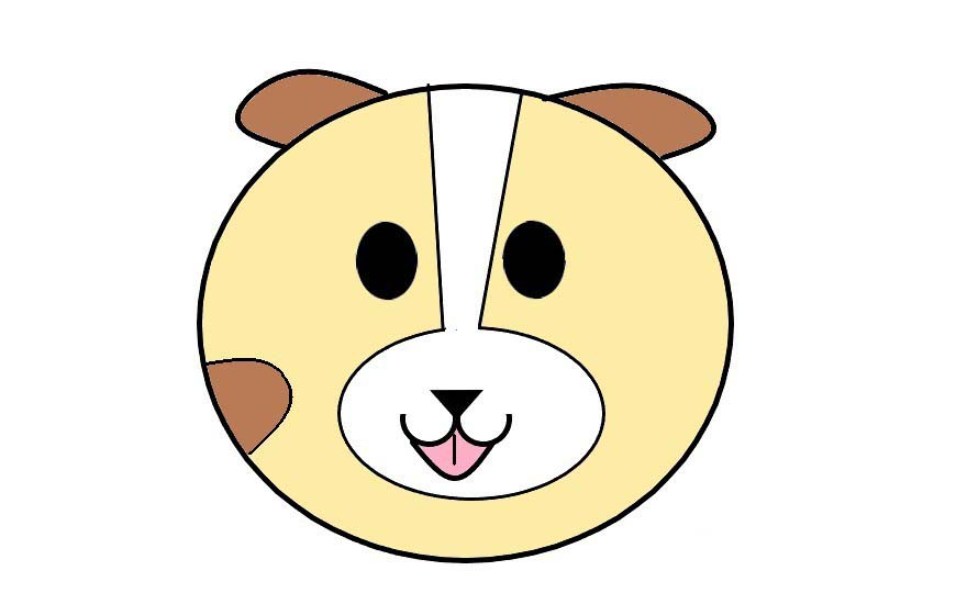 6、线条完成,就是涂色了。脸上是浅黄色,两只耳朵和脸上圆形花纹是棕色的,整个大嘴轮廓和花纹是白色的,嘴是粉色的。这样就完成了。