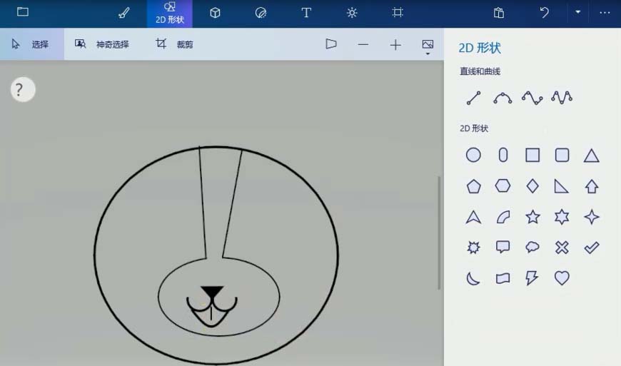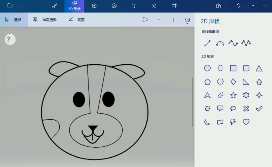 1、打开画图3D应用,选择菜单上的2D形状,单击圆形工具,画一个圆形作为狗的头,接着画一个圆形作为嘴的轮廓。