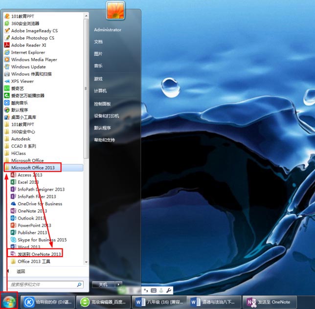 1、打开发送到OneNote2013工具:点击Win图标——所有程序——Microsoft Office 2013——发送到OneNote2013。