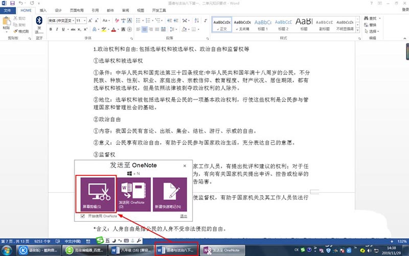 2、点击打开要截图的内容——点击“发送到OneNote2013“的截图剪辑工具。