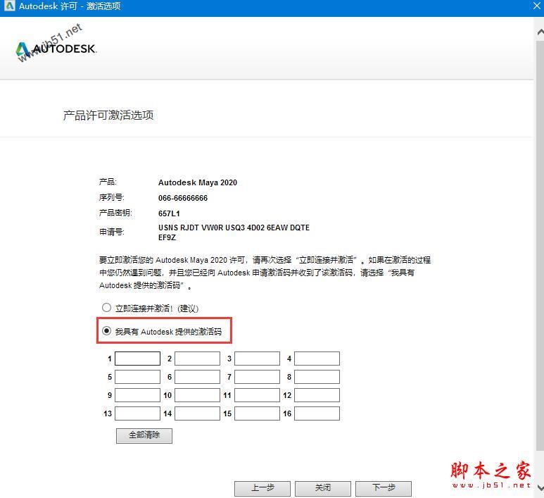 11、选择“我具有 Autodesk 提供的激活码”