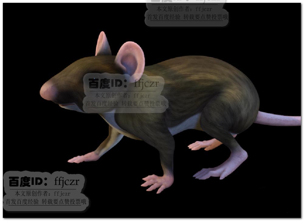 1、打开C4D软件,从预设文件中调出软件自带的模型;老鼠。自带的模型会有贴图材质。这些都不用管它。