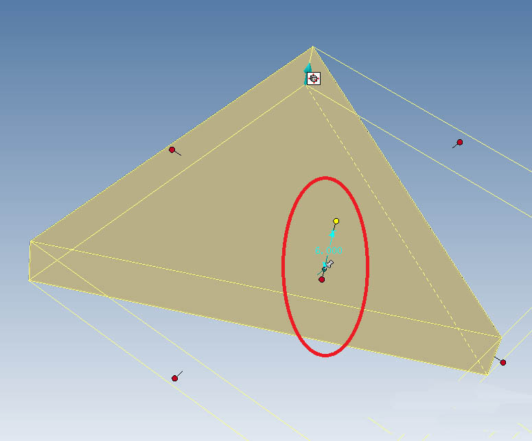 3、如下所示,点击三棱柱,在出现下图中的手柄之后,调整高度为6。