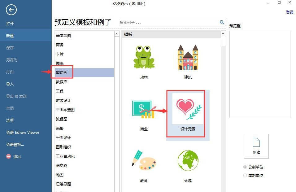 1、打开亿图图示,双击剪切画中的设计元素;
