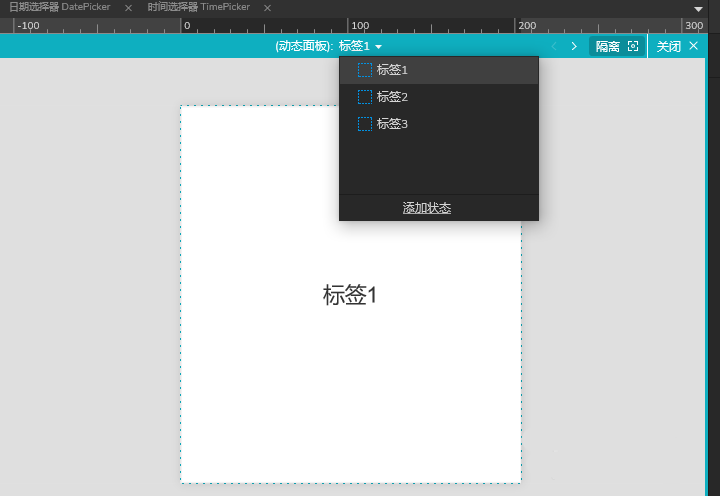 4、双击动态面板,将状态1改为标签1,新增标签2、标签3