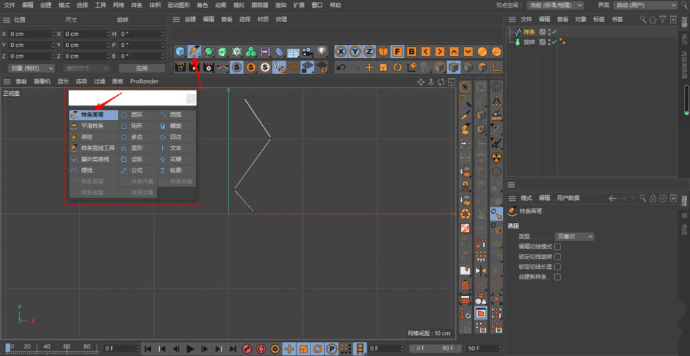 1、首先我们先打开C4D,在生成器栏里选择一个“旋转”生成器。
