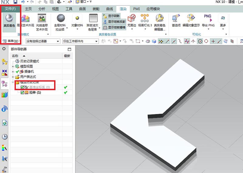 9、如下图所示,在部件导航器中将基准坐标系隐藏,然后真实着色,全局材料拉丝铝,最后的效果就是下图所示的了。