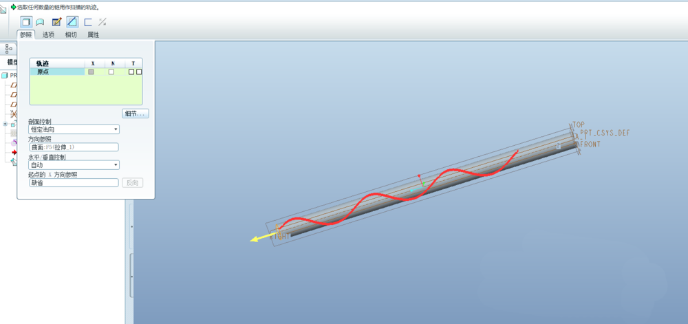 7、点击【插入】-【可变截面扫描】,选择上面的螺旋线作为扫描轨迹。