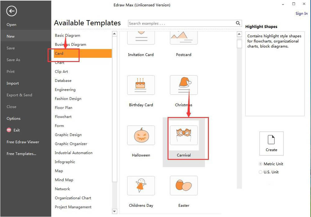 在Edraw Max中,我们可以通过卡片工具创建跟各种节日有关的图形,该怎么制作狂欢节面罩呢?下面我们就来看看详细的教程。