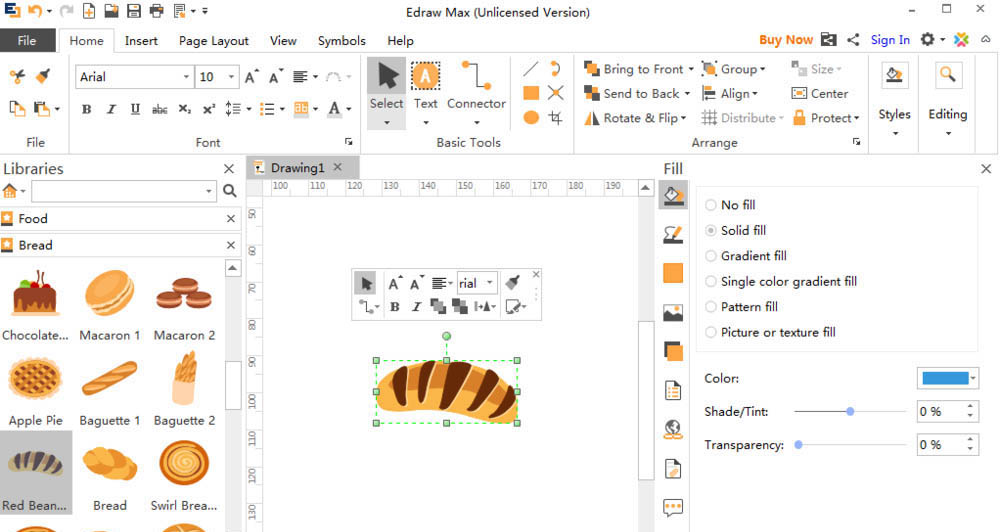 在Edraw Max中,我们可以使用剪切画工具创建各种食物图形,该怎么创建红豆面包呢?下面我们就来就来看看详细的教程。