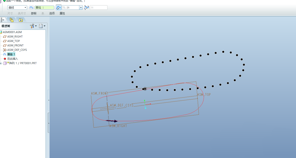 12、退出草绘,在阵列控制面板的成员间距里输入20,完成。