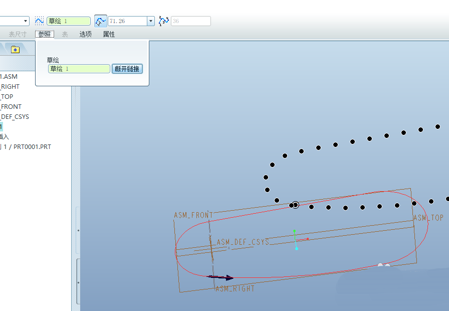 4、点击勾号,退出草绘。点击装配,将链节单元添加进来。