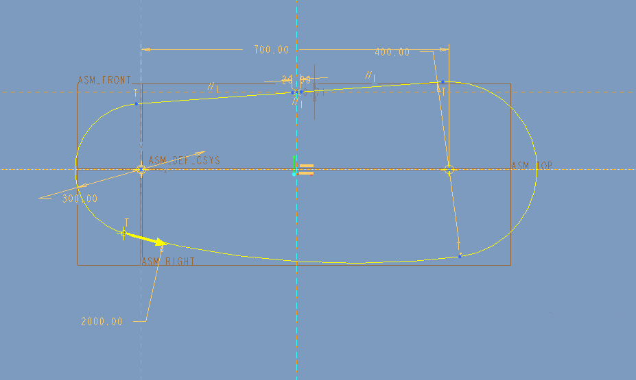 3、点击草绘功能,绘制如下所示的草绘。