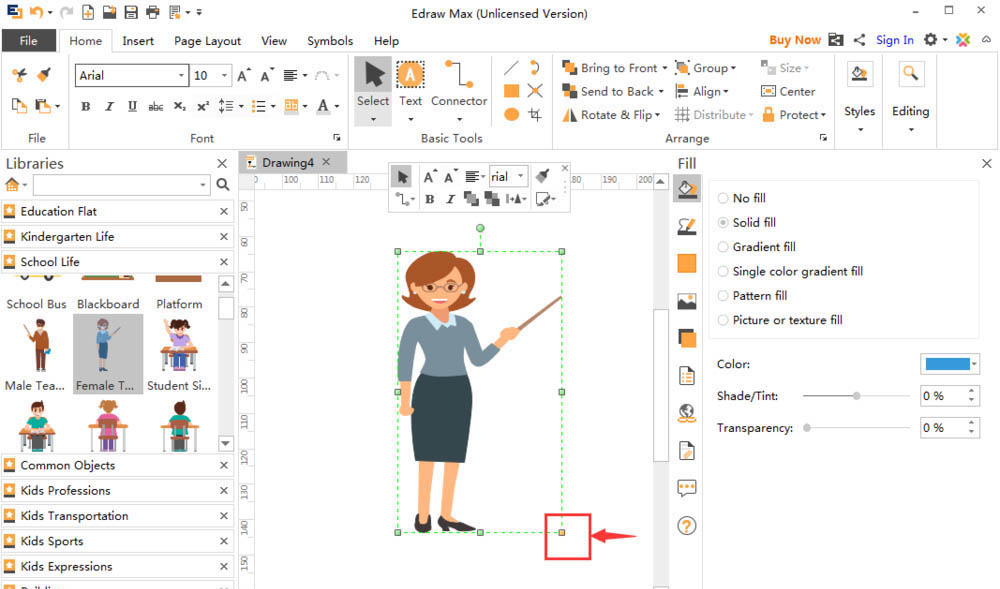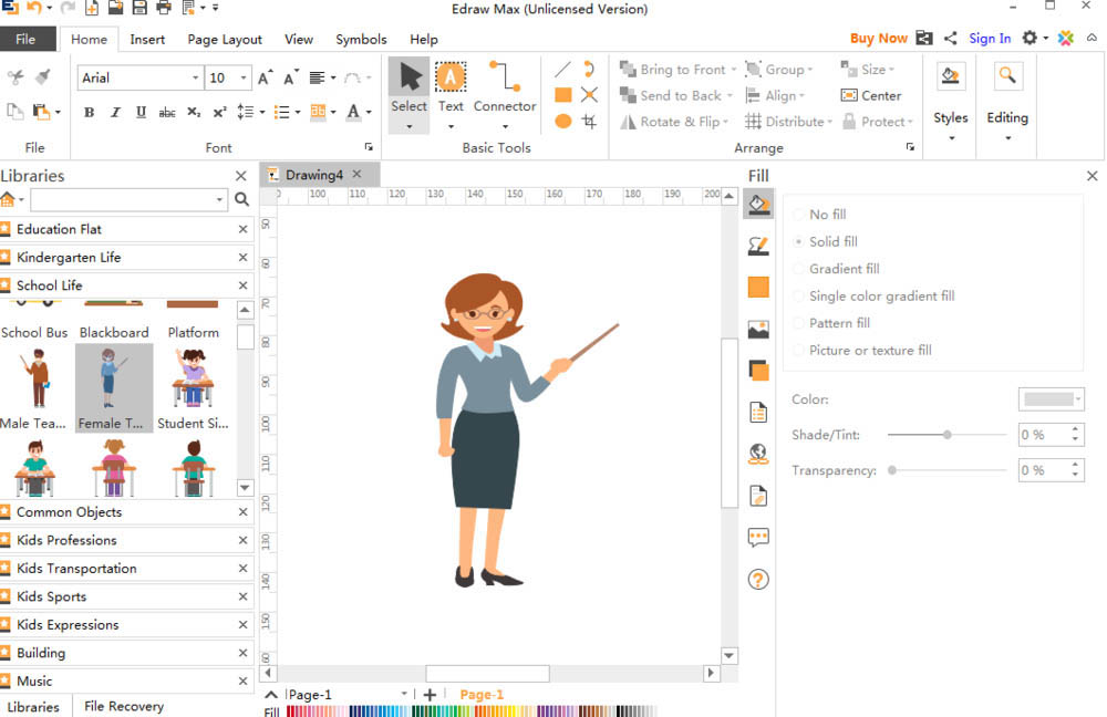 在Edraw Max中,我们可以使用剪切画里的教育类别创建各种跟教育有关的图形,其中就有女教师的形象,我们可以直接调用这个图形,下面我们就来看看详细的教程。