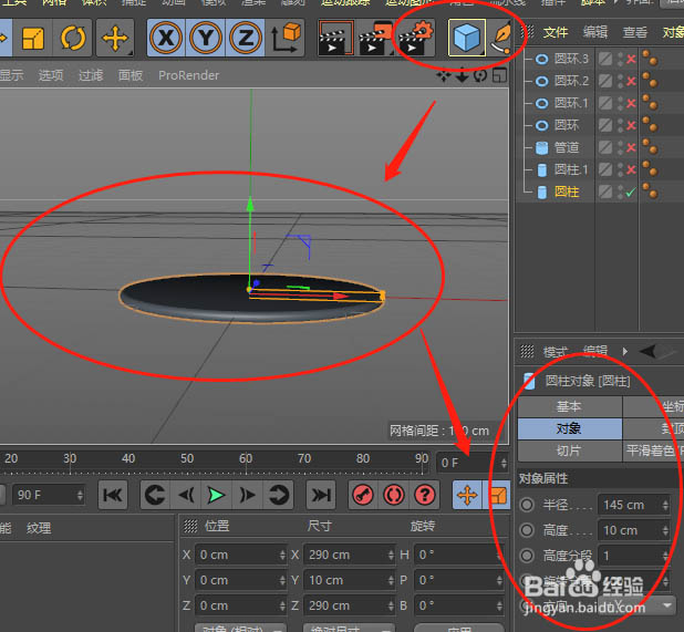 1、对象——圆柱——调整合适数值;