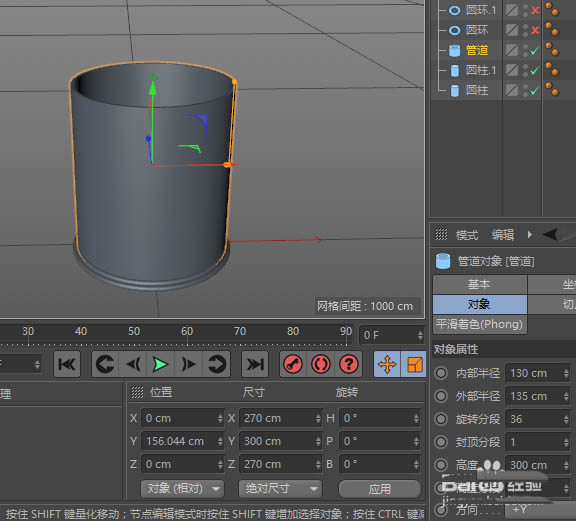 4、对象——圆管——调整合适数值;