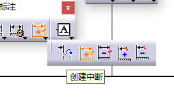在右侧尺寸工具栏中找到创建中断的命令,并点击