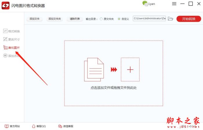 第一步、首先,打开闪电图片格式转换器,在左侧功能选项区选择“美化图片”。