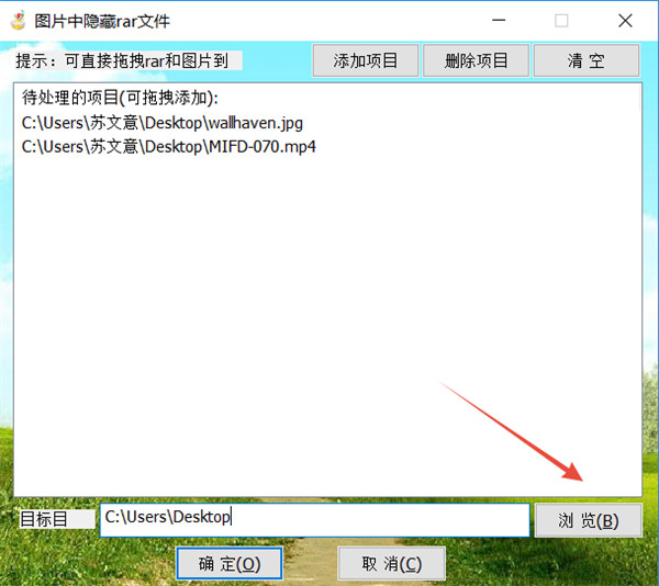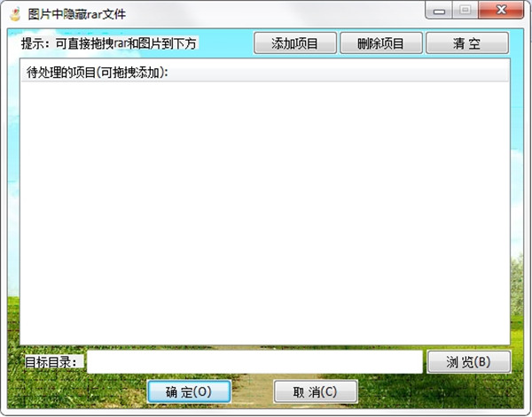 HideRarInImage软件使用方法很简单,打开这个工具,把图片和文件拖拽进工具的框内,点击确定,再选择保存路径即可。图片的格式可以是jpg、png、gif,需要提醒的是,秘密文件需要打包成压缩包格式。文件很小,下载解压即可使用,伪装前你需要准备一张作为伪装的图片,当然还有你需要伪装的秘密文件。有了它,再也不用担心小秘密被发现了,快来下载HideRarInImage体验吧。