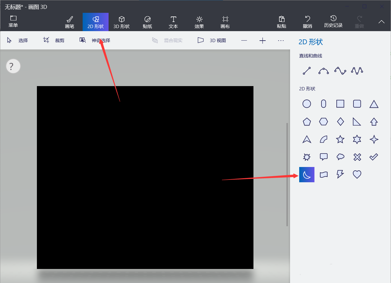 4、如图所示,在画布的左上角绘制出一个月亮。