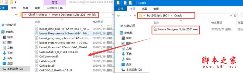 4、将软件包内Crack文件夹的替换补丁粘贴到软件安装目录里(默认C:\Program Files\Chief Architect\Home Designer Suite 2021 (64 bit))