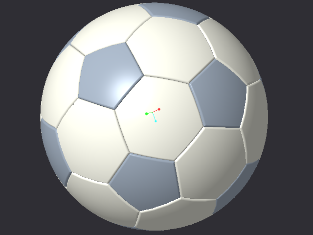 7、创建装配体,将正五边形球面与正六边形球面组合起来,隐藏中心轴,渲染颜色,就可以得到一个完美的球形了。